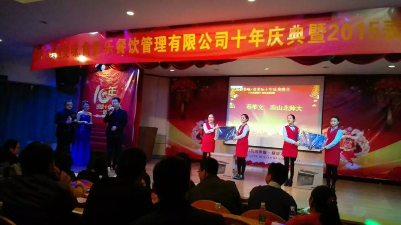 伴随着主持人服装的华丽转换,晚会现场进入第二轮的热场,各餐饮部员工卧虎藏龙,多才多艺,载歌载舞的表演,瞬间让颁奖舞台变成了“星光大道”,更有现场抽奖活动,不断把舞台推向一个又一个高潮。整场晚会热力十足,预示着,在未来的十年,甚至更多个十年,公司将如展翅高飞的雄鹰,越飞越高!